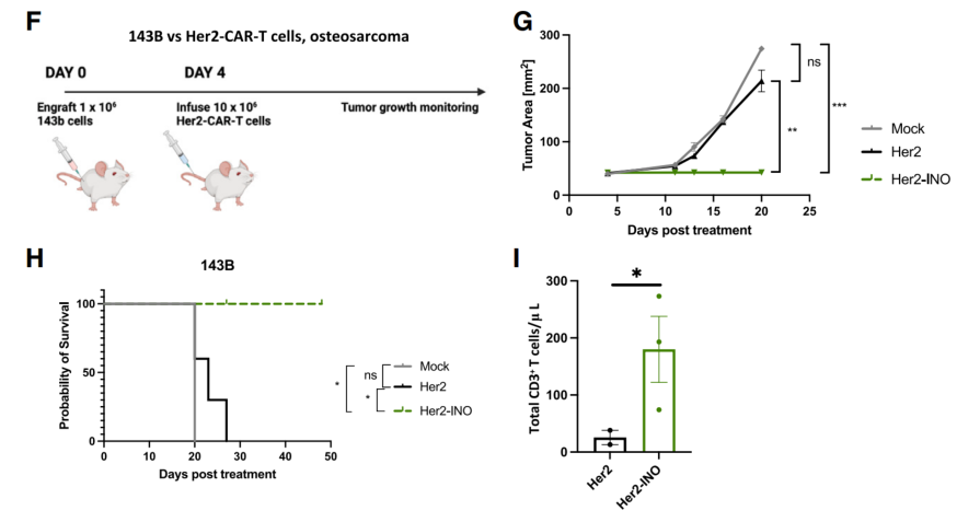 综上所述,INO顺利获得诱导T细胞代谢重编程,增强细胞干性,抵抗免疫抑制,增强CAR-T效应功能,并适用于临床级别的大规模生产。或可为CAR-T细胞对抗实体瘤的困境给予一种解决思路。